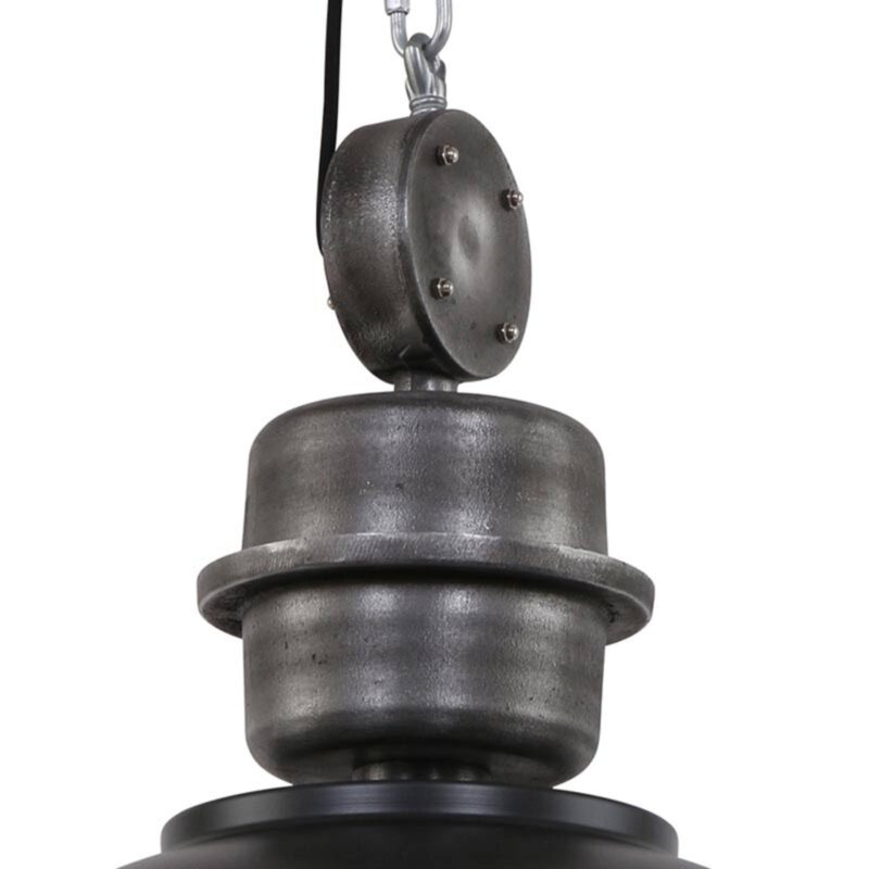 Bikkel – industriálne navrhnuté závesné svietidlo Závesné svietidlo Bikkel má klasický priemyselný vzhľad a vnáša do obývacej izby nádych loftového vkusu. Dizajn tienidla tohto svietidla pripomína továrenské vybavenie z minulosti – štýl, ktorý dnes nájdeme v mnohých trendoch. Naznačený kladkostroj na hornom konci tienidla a svorky, prostredníctvom ktorých je difúzor upevnený na kovovom tienidle, sú tie najštýlovejšie doplnky industriálneho trendu. Čierna povrchová úprava dotvára tento charakteristický vzhľad a robí zo svietidla Bikkel výrazný kus nábytku.