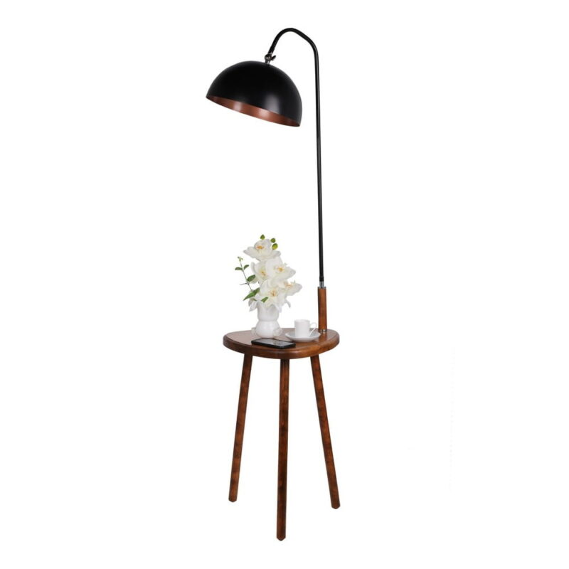 Čierna stojacia lampa s odkladacím stolíkom Opviq lights