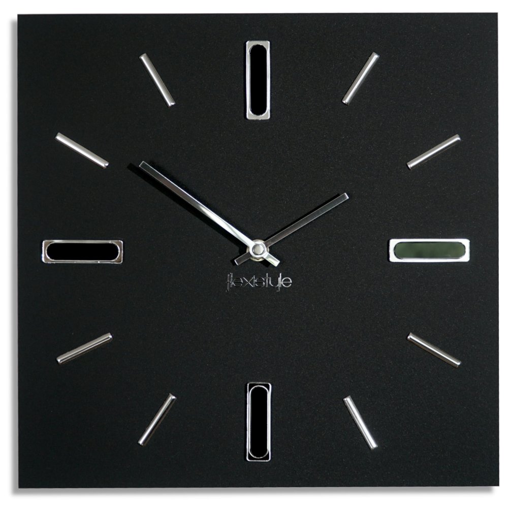 Čierne hodiny BRILLIANT 30 cm so striebornými doplnkami