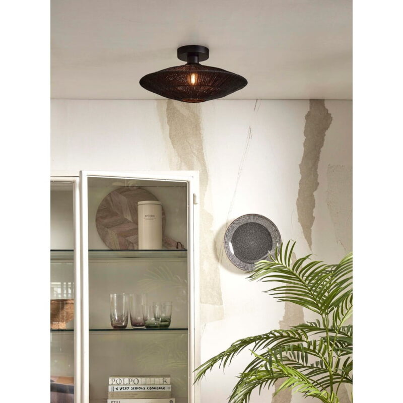 Čierne stropné svietidlo s tienidlom z juty ø 40 cm Iguazu – Good&Mojo