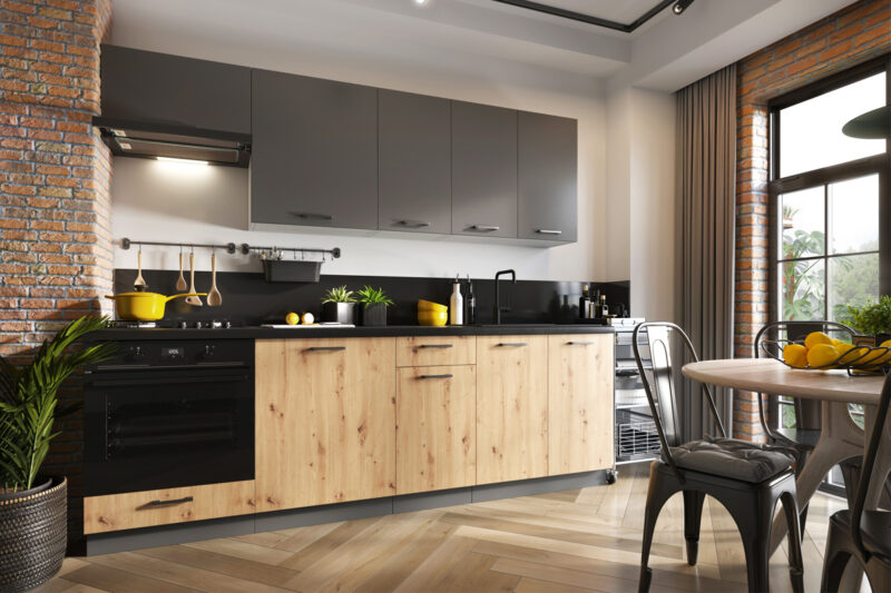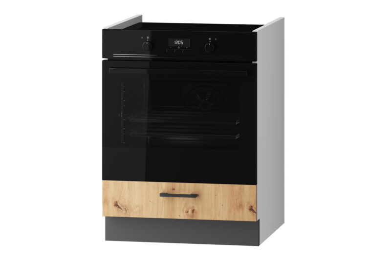Kuchynský nábytok CLEMENTIS v sebe spája teplé prírodné farby a štýlovosť farby grafit. Je ideálna do moderných priestorov, kde vytvorí efektnú kompozíciu, ktorá zaujme na prvý pohľad. Oceníte cenovú dostupnosť tohto výrobku ako aj jednoduché línie.CLEMENTIS DK60 je dolná skrinka na vstavanú rúru. Je vyrobená z kvalitnej LTD dosky. Tento materiál nie je náročný na údržbu, čo ocení každý majiteľ. Korupus s hrúbkou 16mm je v prevedení popol – vo farbe svetlošedá. Predné čielko je vo farbe dub artisan. Rozmery (š/v/h): 60 x 82 x 44,6 cm. Súčasťou skrinky je spodný sokel. Rúra nie je v cene výrobku.Skrinka CLEMENTIS DK60 je vhodná ku kuchynskej zostave CLEMENTIS 180 aj CLEMENTIS 240.Dodávame v demonte.