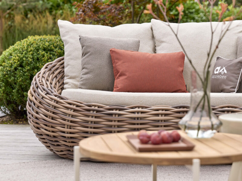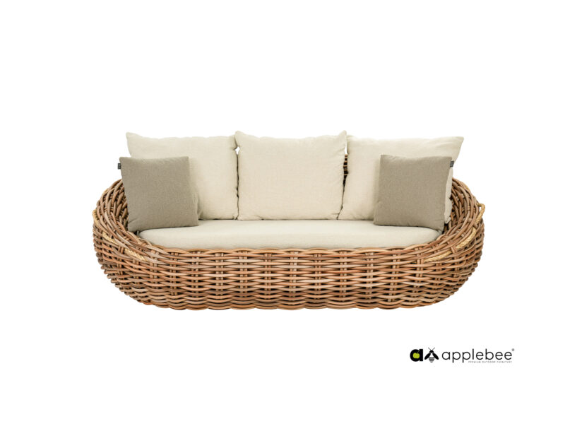 Cocoon 3-sedačka v odtieni mocca spája pohodlie a moderný dizajn s nádychom prírody. Jej jedinečný tvar a mäkké vankúše poskytujú dokonalé miesto na oddych v záhrade či na terase.