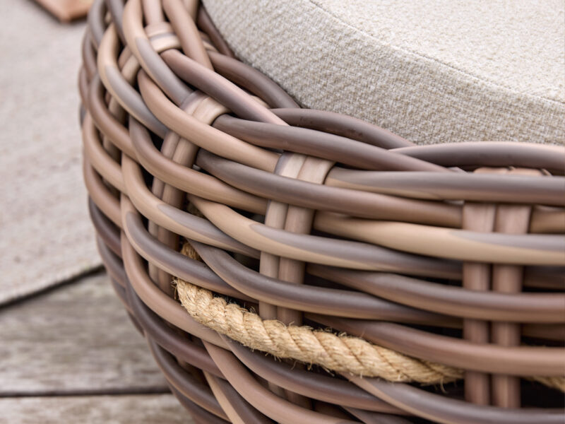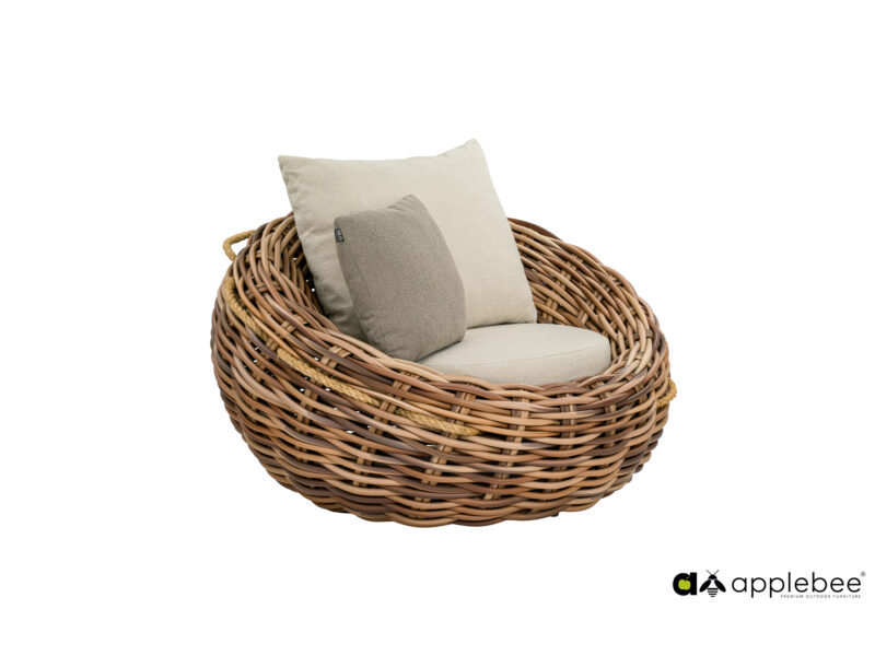 Kreslo Cocoon v odtieni mocca spája prírodný šarm a moderný dizajn. Svojím útulným tvarom a mäkkými vankúšmi vytvorí dokonalé miesto na relaxáciu vo vašej záhrade či terase.