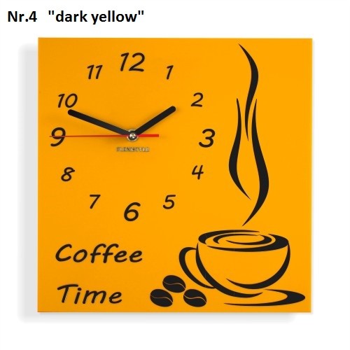 Coffee Time nástenné kuchynské hodiny tmavožltá