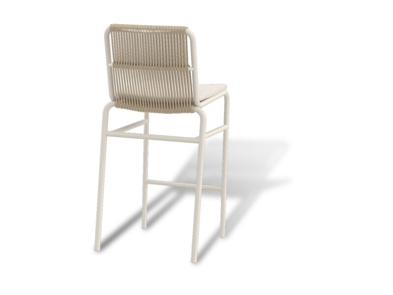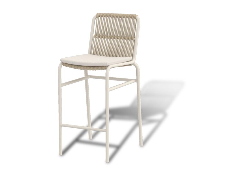 Štýlová a pohodlná barová stolička Como vnesie do exteriéru eleganciu a nadčasovosť. Jej jemný hliníkový rám a odolný plastový výplet spájajú štýl a komfort spolu s textilným vankúšom.