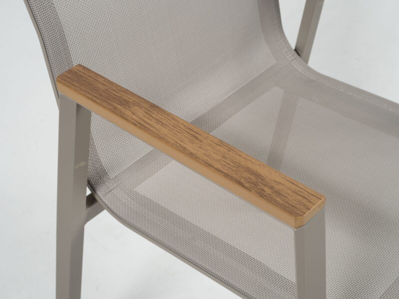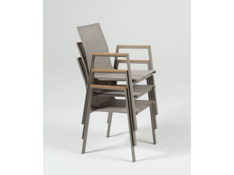 Elegantnú jedálenskú stoličku Comodo s ľahkosťou zladíte s exteriérovým jedálenským stolom. Jej antracitový hliníkový rám a lakťové opierky dodávajú štýl, zatiaľ čo stohovateľný dizajn uľahčuje uskladnenie.