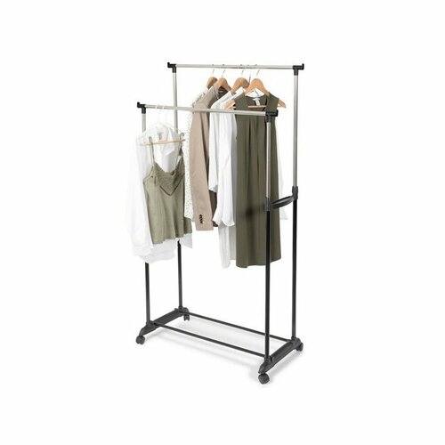 Compactor Dvojitý výsuvný stojan na šaty ECO Stender, pojízdný na kolečkách, 78 x 42 x 85-165 cm
