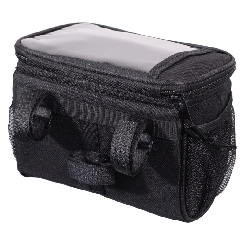 Cyklobrašňu na upevnenie na riadidlá bicykla.Jednoduché uchytenie pomocou pásikov so suchým zipsom s vysokou pevnosťou. Je vyrobená z vodeodolného materiálu, je uzatvárateľná na zips a po stranách je vybavená dvoma sieťavanými vreckami. Na hornej strane je potom navyše vrecko s priehľadnou sľudou pre zasunutie mapy alebo telefónu (umožňuje aj ovládanie dotykových displejov).Vnútorný objem cca 3,5 litra.