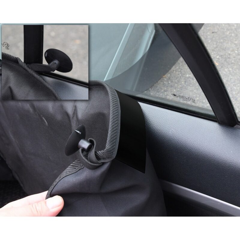 Táto praktická pomôcka zabráni znečisteniu vnútornej výplne dverí automobilu pri preprave psa alebo nákladu. Uchytáva sa pomocou lišty za hranu okna a fixuje pomocou prísaviek. Veľkosť je univerzálna a vhodná pre všetky vozidlá. Pevný materiál odpudzuje nečistoty a veľmi ľahko sa čistí.
