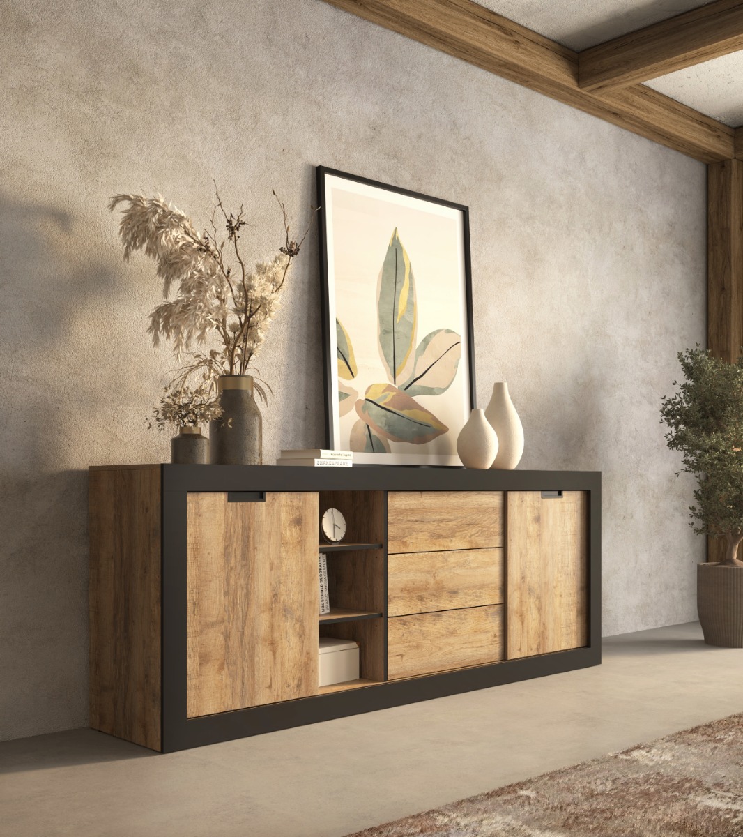 COOP široká komoda 2D3S, dub Samdal/čierna mat