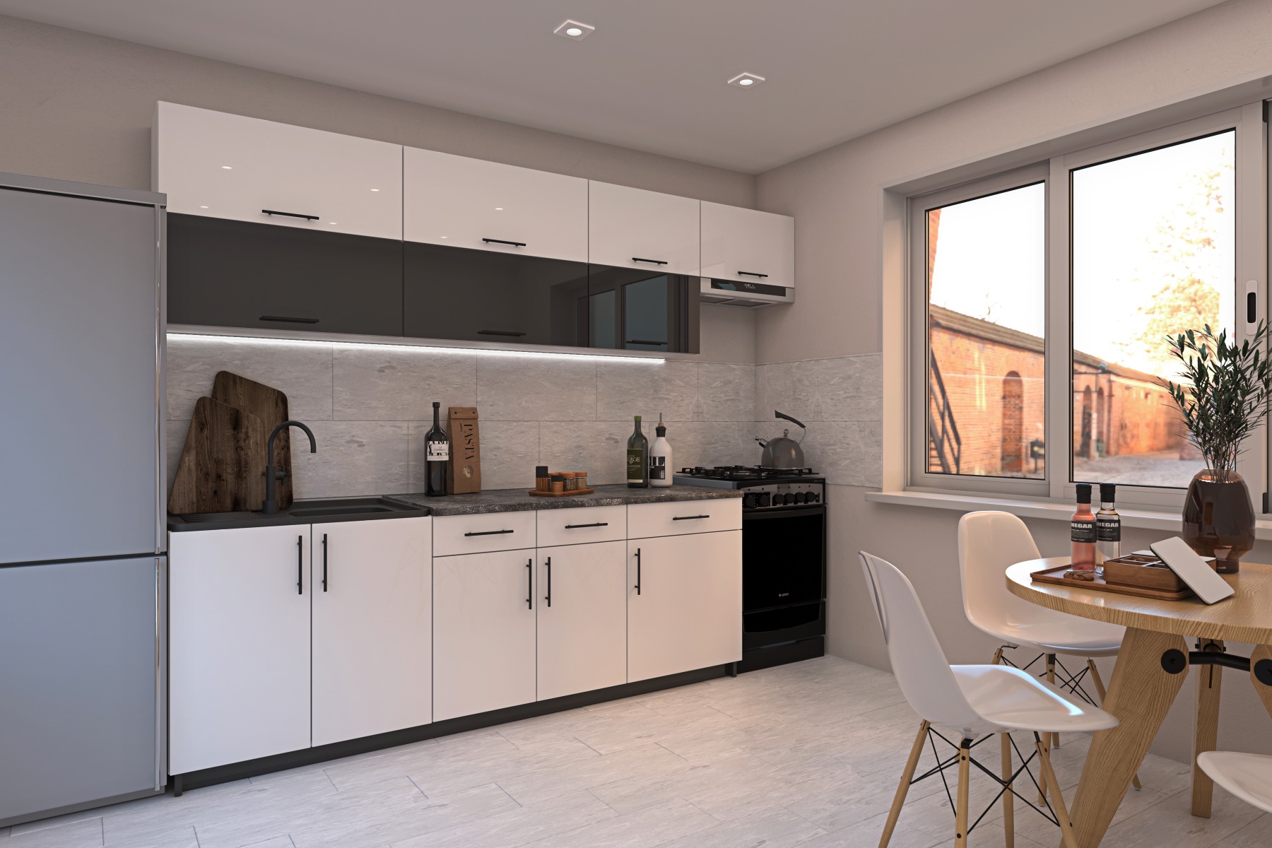 CORAL kuchynská linka 280, biely lesk / antracit lesk