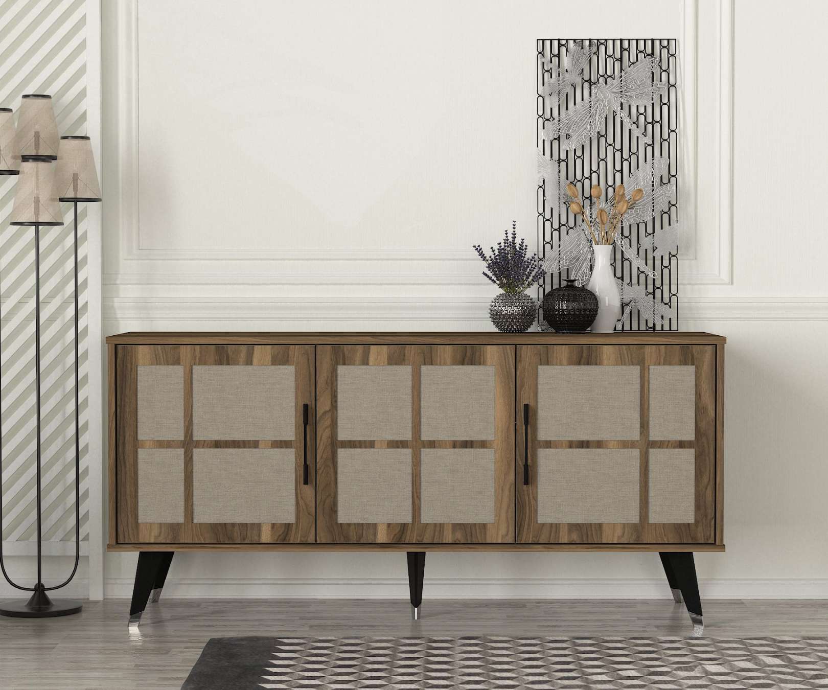 Komoda COTOUREPredstavujeme vám komodu COTOURE, ideálnu voľbu pre vašu obývaciu izbu alebo spálňu. Táto luxusná komoda je navrhnutá tak, aby vám poskytla dostatok úložného priestoru a zároveň dodala vášmu interiéru elegantný a sofistikovaný vzhľad.Typ tovaru: KomodaVhodné do miestnosti: Obývacia izba a spálňaMateriál: LTDRozmer: 160 x 75.6 x 45 cmFarba: Orech + textileVybavenie: DvierkaŠtýl: LuxusnéPočet dverí, dvierok: 3Hrúbka materiálu: 18 mmDodatočné informácie: Dodávame v demonteKomoda COTOURE je vyrobená z kvalitného LTD materiálu s hrúbkou 18 mm, čo zaisťuje jej pevnosť a dlhú životnosť. Elegantná kombinácia orechového dekoru a textilného vzhľadu dodáva komode moderný a sofistikovaný vzhľad, ktorý sa hodí do akéhokoľvek interiéru. Komoda je vybavená troma dvierkami, ktoré poskytujú dostatok úložného priestoru pre vaše potreby.Dodávame v demonte, čo znamená, že komodu ľahko zložíte podľa priloženého návodu. Komoda COTOURE je perfektnou voľbou pre každého, kto hľadá štýlový a funkčný nábytok do svojej obývačky alebo spálne.
