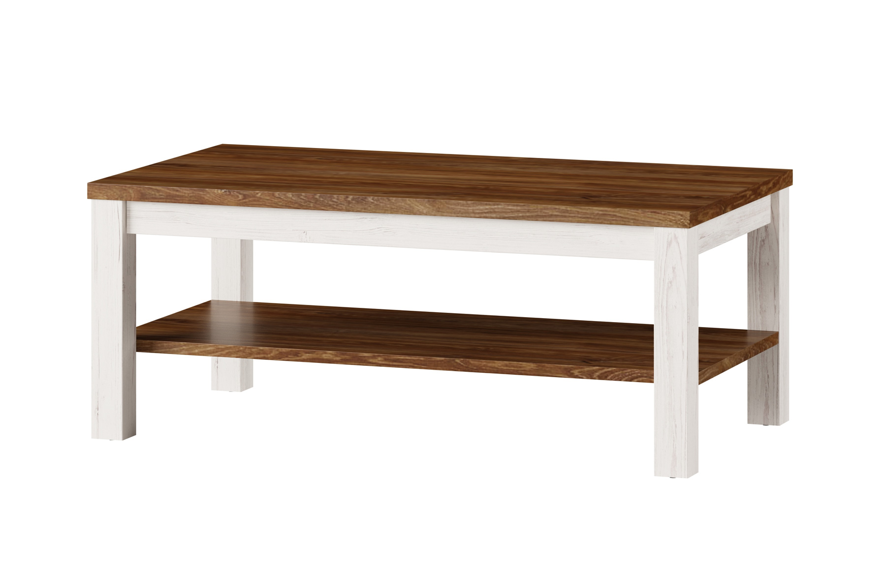 Priestranný konferenčný / kávový stolík COUNTY s odkladacou poličkou vo veľmi obľúbenom vintage & provensal štýle. Stôl je vyrobený z kvalitnej LTD dosky, ktorá je potiahnutá odolnou fóliou a je ľahká na údržbu vo farbe dub stirling v kombinácií s borovicou andersen.K stolíku je možné dokúpenie ďalších elementov z toho istého sektoru, čím si môžete zostaviť obývačku alebo jedálňu podľa svojich predstáv a potrieb.Dodávame v demontovanom stave.