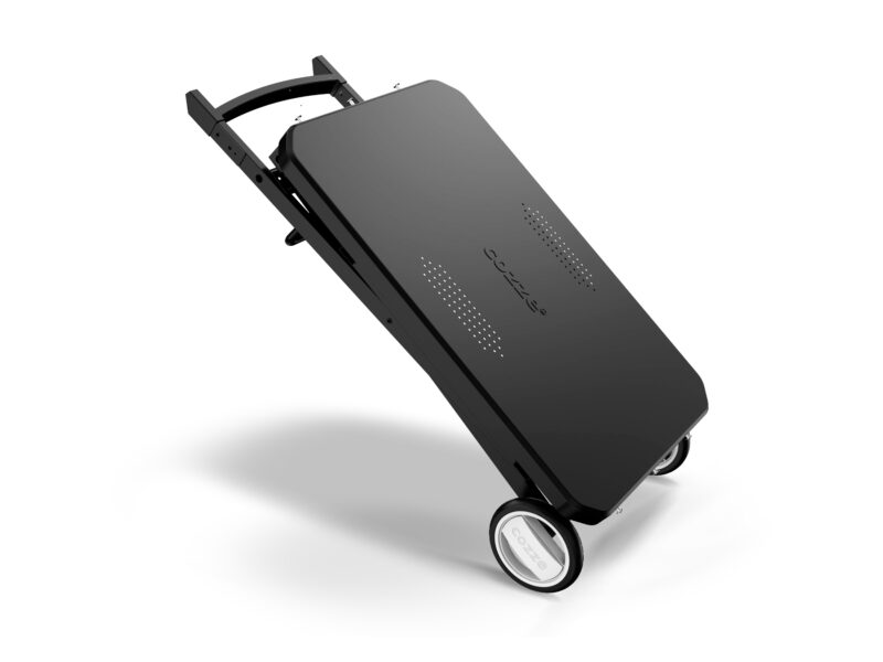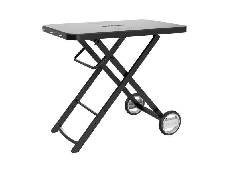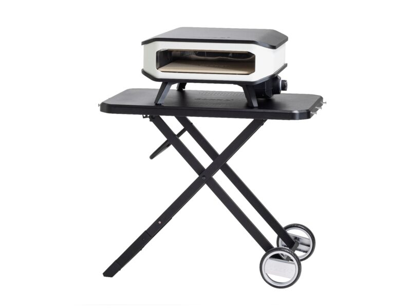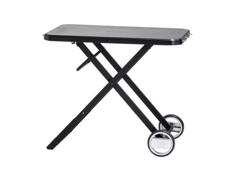 Praktický skladací stôl s kolieskami na uloženie elektrického grilu či pizza pece.