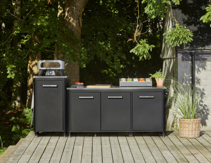 Kompaktný set záhradnej kuchyne Cozze kombinuje praktickosť a úložný priestor. Obsahuje stôl s tromi dvierkami a vyššiu skrinku s jednými dvierkami. Nerezová pracovná plocha, zabudovaný odpadkový kôš a dostatok úložného priestoru robia z tohto setu ideálne riešenie na grilovanie!