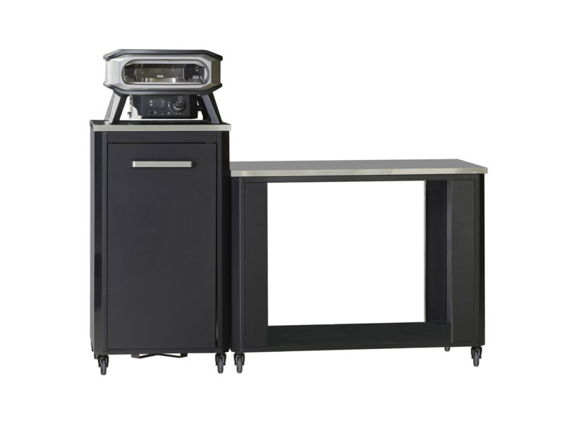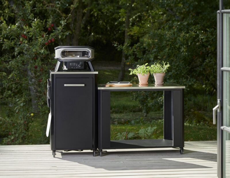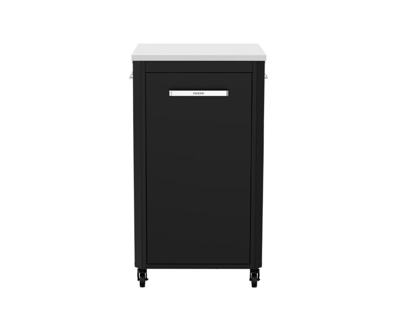 Štýlový set záhradnej kuchyne Cozze ponúka kombináciu vyššej skrinky s jednými dvierkami a otvoreného modulu s nerezovou pracovnou doskou. Ideálne riešenie na uskladnenie kuchynských potrieb a pohodlnú prípravu jedál v exteriéri.