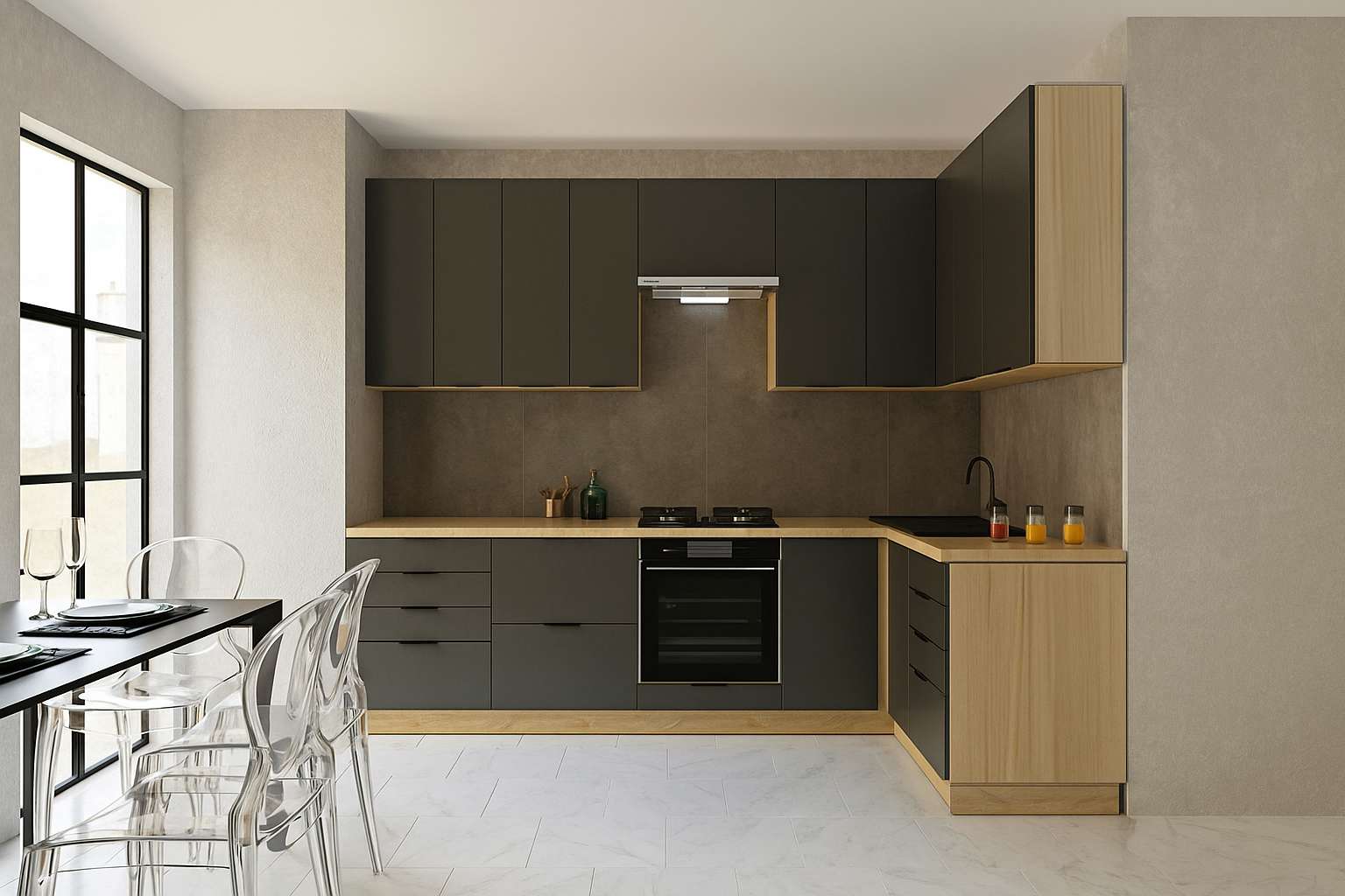 CRAF R2V moderná rohová kuchyňa 280 x 140, grafit