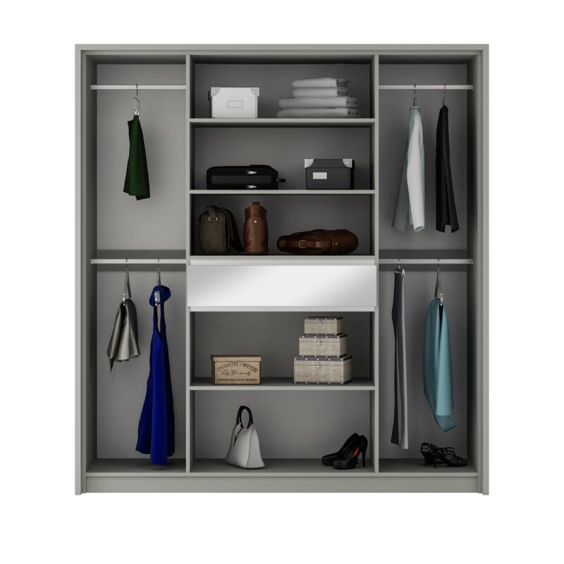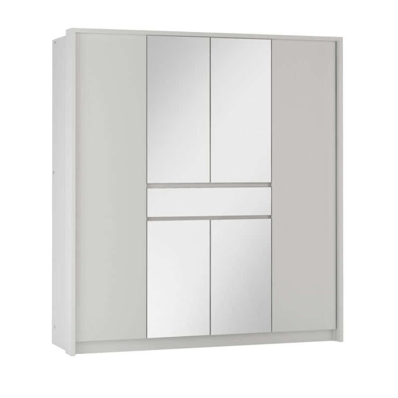 Šatníková skriňa CROATIA sa vďaka svojmu jednoduchému a neutrálnemu štýlu hodí do každého moderného interiéru.Vnútorný úložný priestor skrine je zmysluplne rozvrhnutý na krajné časti, kde sa nachádzajú šatníkové tyče a strednú časť, kde sú vložené objemné police. Oceníte tiež praktickú zásuvku.Skriňa obsahuje aj dvierka so zrkadlom.Nábytok je vyrobený z laminovaného dreveného materiálu v bielom prevedení s matným povrchom.Rozmery skrine sú: (š/v/h) 200 x 217 x 65 cm.Dodávame v demontovanom stave.