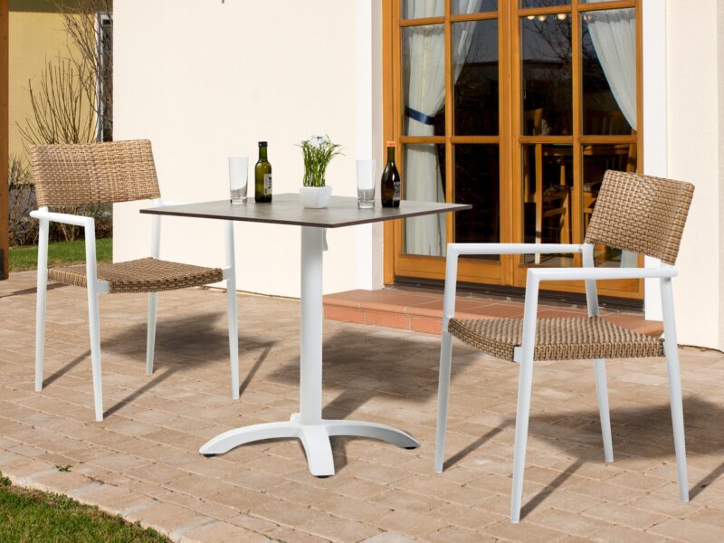 Moderná sklápateľná stolová podnož Cross-1, ideálna na použitie v kaviarňach alebo v reštauráciách.