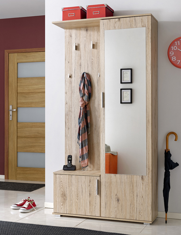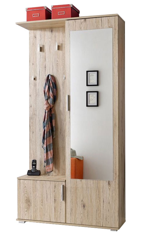 Moderná predsieňová zostava so zrkadlom CUBANA. Nábytok je vyrobený z LTD dosky. Trendové farebné prevedenie dub san remo. Rozmery predsiene CUBANA v/š/h 200 x 101 x 32 cm. Dodávame v demonte.