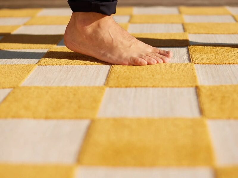 Exteriérový koberec Cube, s neprehliadnuteľnou kombináciou farieb premení vašu terasu a balkón na útulné a štýlové miesto.