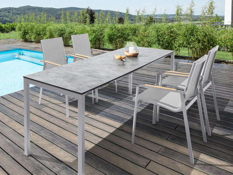 HPL rozťahovací stôl je ideálny pre tých, ktorí hľadajú flexibilitu a štýl pre svoj vonkajší priestor. S týmto stolom môžete ľahko prispôsobiť veľkosť stola podľa potreby, aby ste mohli pohodlne usadiť viac hostí.
