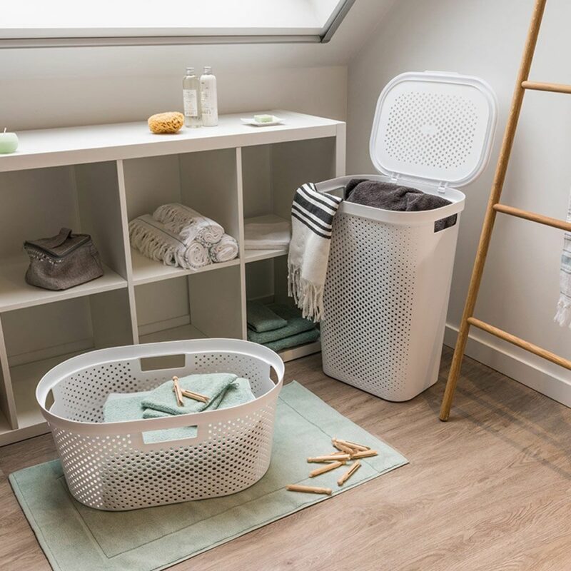 Kôš na bielizeň z radu INFINITY s jednoduchým tvarom inšpirovaným škandinávskym štýlom. Otvory na ňom zaisťujú cirkuláciu vzduchu. Kôš nevyžaduje používanie ďalšieho vrecka, ktoré by chránilo bielizeň.