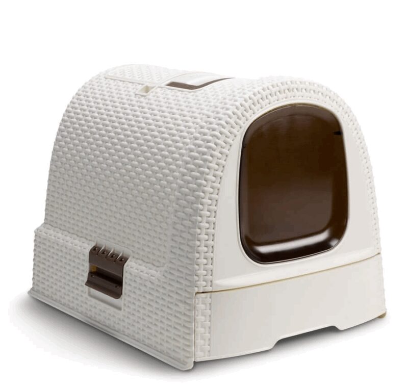 Luxusná a vkusná toaleta pre mačky, ktorá v sebe kombinuje krásu ratanu a praktickosť kvalitného i bytelného plastu. Vďaka svojmu elegantnému vzhľadu nebude pôsobiť rušivo v interiéri.Toaleta má bočné klipy pre jednoduché otvorenie pri čistení a výsuvnú spodnú zásuvku na podstielku.Môžete teda vyčistiť buď len zásuvku s podstielkou alebo celú toaletu. Súčasťou balenia je aj praktická lopatka.Iste tiež oceníte výklopné dvierka a filter v hornej časti na zachytenie zápachu i rukoväť na pohodlné prenášanie. Kvalitný plast je odolný voči UV žiareniu. Vyrobené v EU.