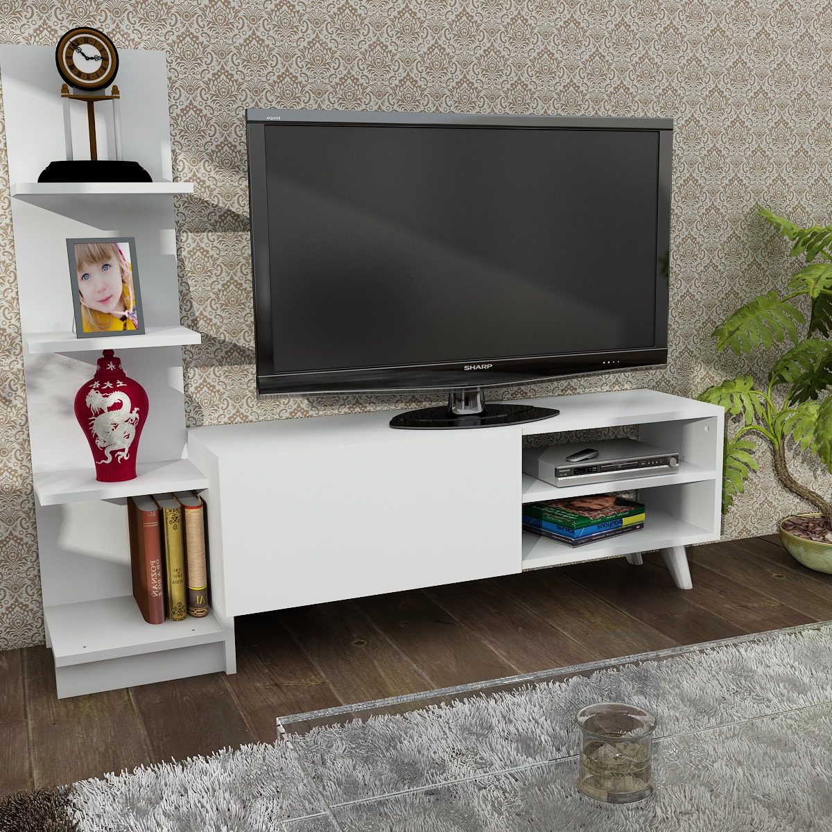 DALI malá TV stena s regálom, biela matná