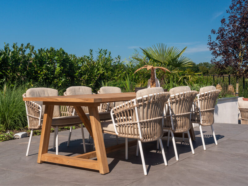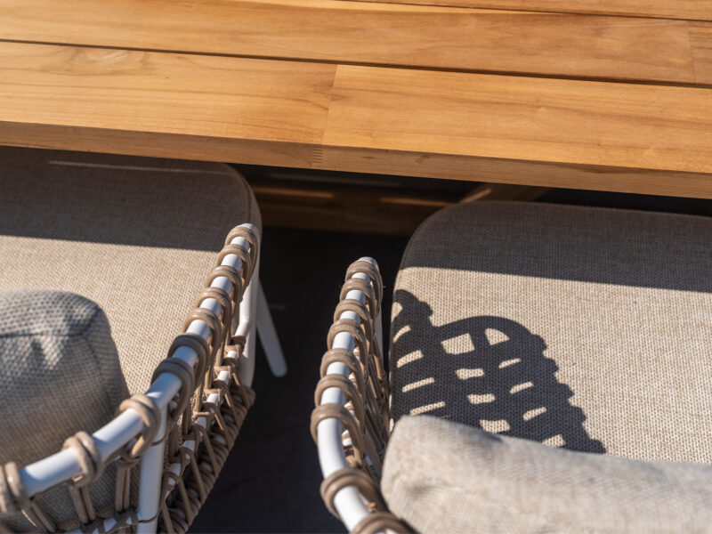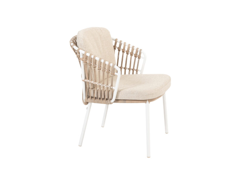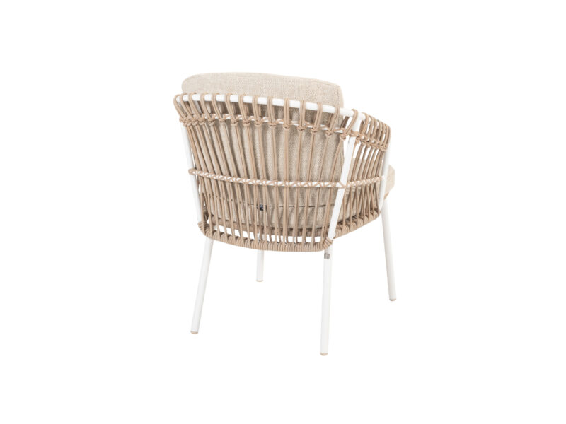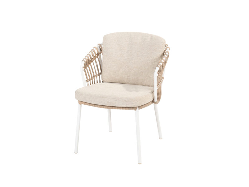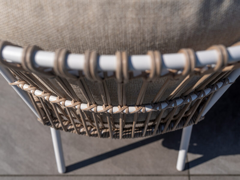 Vychutnajte si dlhé letné dni s eleganciou a štýlom, ktorý prináša táto jedálenská stolička Dalias s bielym rámom a prúteným výpletom.
