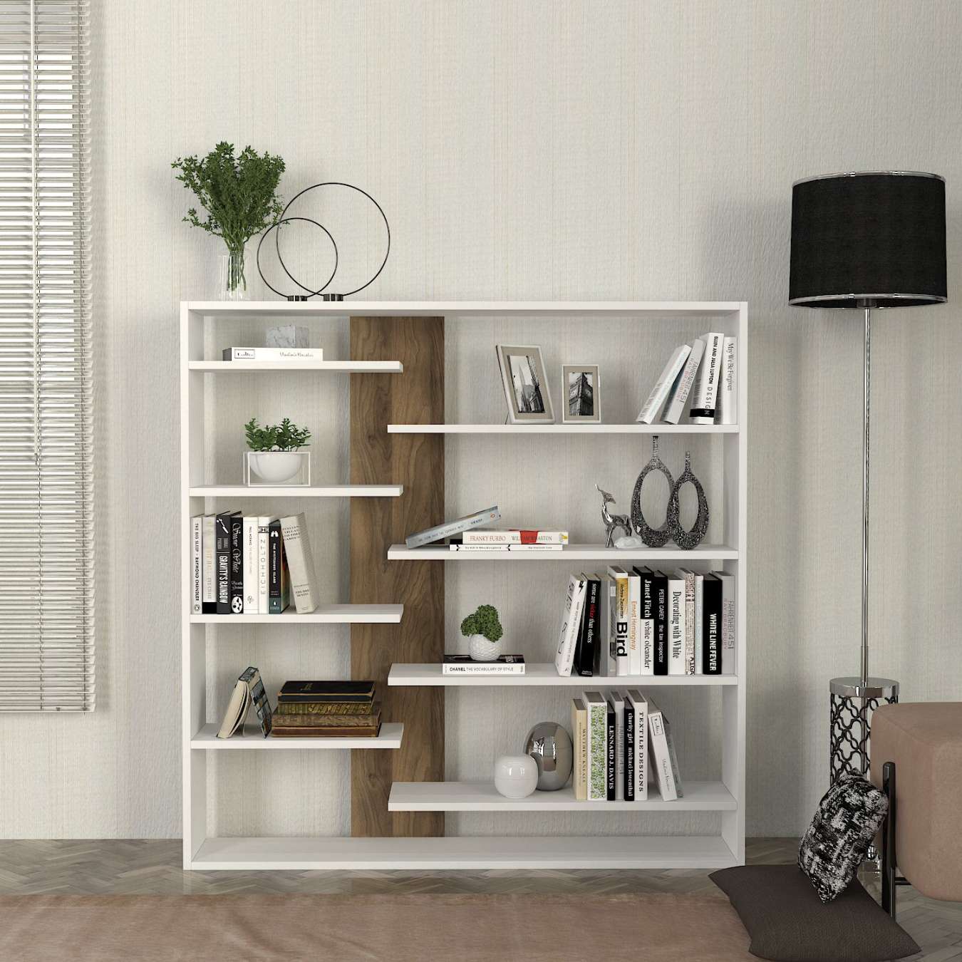 DANDY policový regál, biela/orech