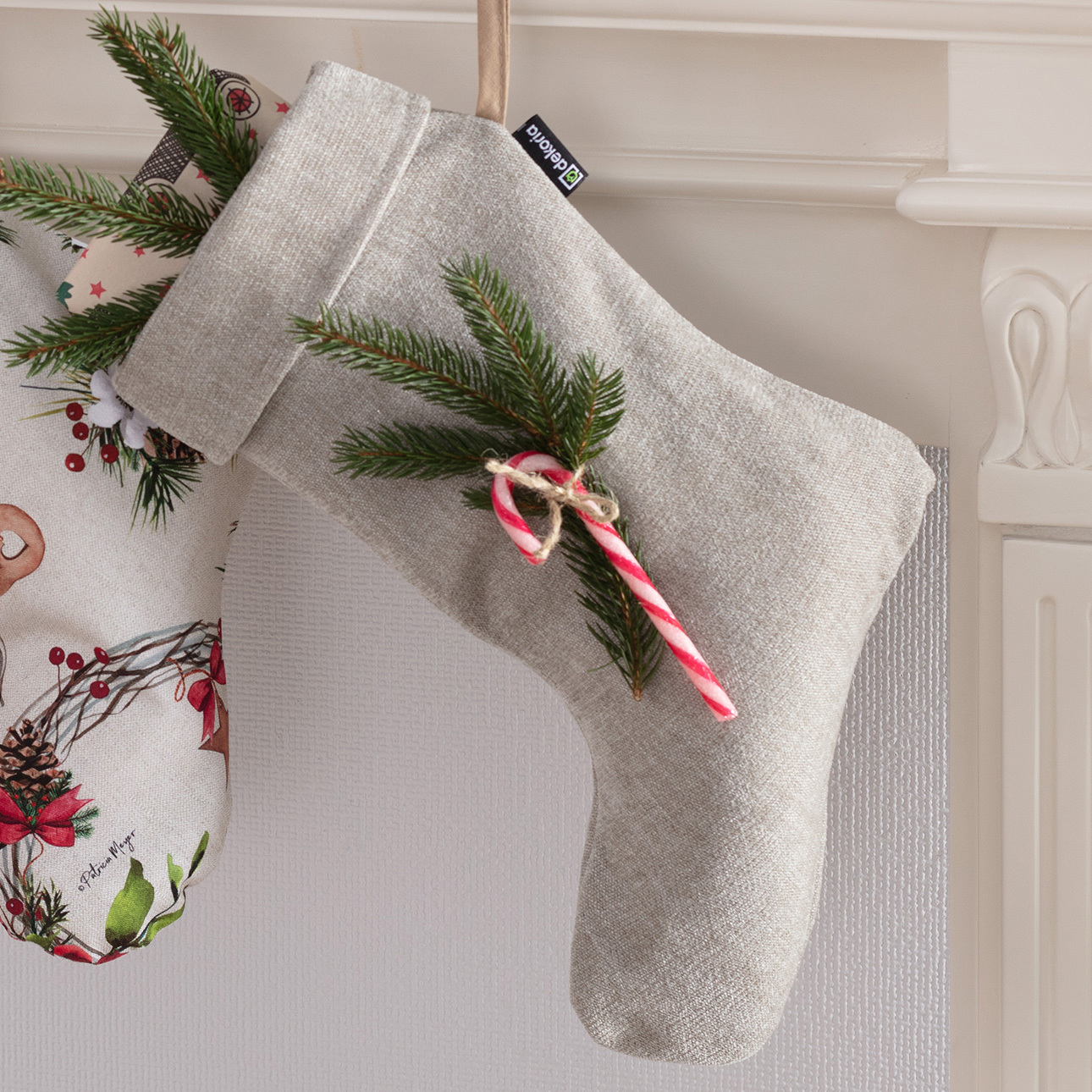 Dekoratívna darčeková ponožka ušitá z látky. Darčekové ponožky sú ikonickou vianočnou dekoráciou. Budú vyzerať skvele zavesené nad krbom, vytvoria vo vašom domove výnimočnú atmosféru a navodia sviatočnú náladu.