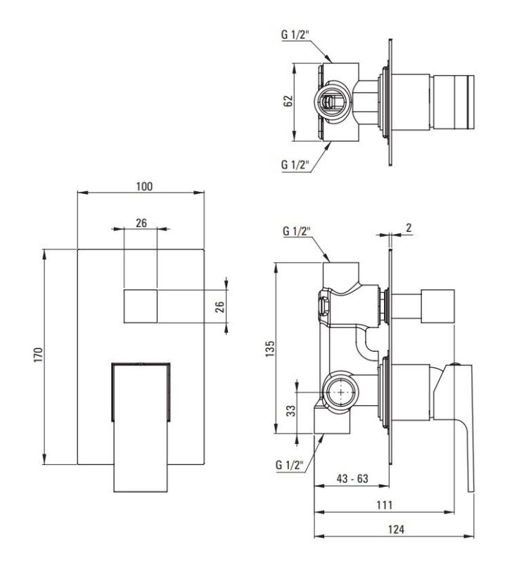 DEANTE – Anemon čierna – Sprchová batéria, podomietková, so sprchovacím spínačom BBZ_N44P