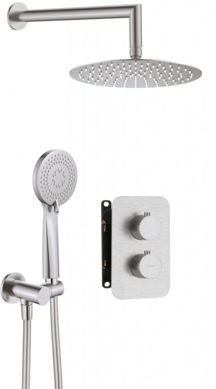 Sprchový set pod omietku má všetky potrebné prvky na vybavenie sprchy. Vysoká kvalita použitých materiálov mnohokrát testovaných v laboratórnych podmienkach zaisťuje bezporuchovú prevádzku. Moderný dizajn a estetické prevedenie upúta pozornosť a vstavaná montáž opticky zväčšuje priestor. Tradičné riešenie umožňuje získať priestor napríklad pre prídavnú policu na kozmetiku alebo vešiak. Vďaka tomu môžete ľahšie a rýchlejšie upratať celú miestnosť. Súprava má termostatický BOX, ktorý chráni pred náhlymi zmenami teploty. To je obzvlášť dôležité, ak sú medzi užívateľmi deti alebo starší ľudia, aby sa nepopálili. Tiež nemusíte čakať, až sa studená voda ohreje na zodpovedajúcu teplotu, a vo výsledku ušetríte tento cenný zdroj aj peniaze. Pohodlná inštalácia – BOX môžete nainštalovať hneď a kedykoľvek si vybrať vonkajšie prvky Nadčasovosť a neobmedzené možnosti tvorby Doplnkovosť a komplexnosť ponuky Najlepšie materiály zaručujú odolnosť a spoľahlivosť produktu Iba tie najlepšie materiály, ktorých kvalitu potvrdzujú laboratórne testy Inovatívne a ľahko udržiavateľný povlak – kartáčovaná oceľ 38° teplotný zámok zabraňuje popáleniu Nastaviteľný uhol slúchadla Anti-calc systém uľahčuje odstraňovanie usadenín vodného kameňa Ultra tenká oceľová hlava Anti-Twist systém, ktorý zabraňuje krúteniu hadice Oceľová sprchová hlavica V ponuke je prípravok na čistenie kovania vo všetkých farbách Zapustená montáž zaisťuje estetiku kúpeľne Zámok teploty 38˚C zabraňuje popáleniu Slúchadlá s funkciou anti-calc 3-funkčné slúchadlo Odolné koncovky hadíc z mosadze(GT) Ean: 5907650844891