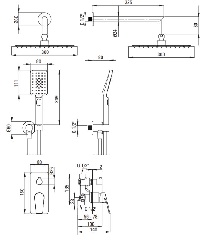 Sprchový set pod omietku má všetky potrebné prvky na vybavenie sprchy. Vysoká kvalita použitých materiálov mnohokrát testovaných v laboratórnych podmienkach zaisťuje bezporuchovú prevádzku. Inovatívny dizajn a estetické prevedenie upútajú pozornosť a zapustená inštalácia opticky zväčší priestor. Minimalistickým riešením získate priestor napríklad pre prídavnú policu na kozmetiku alebo vešiak. Vďaka tomu môžete ľahšie a rýchlejšie upratať celú miestnosť.