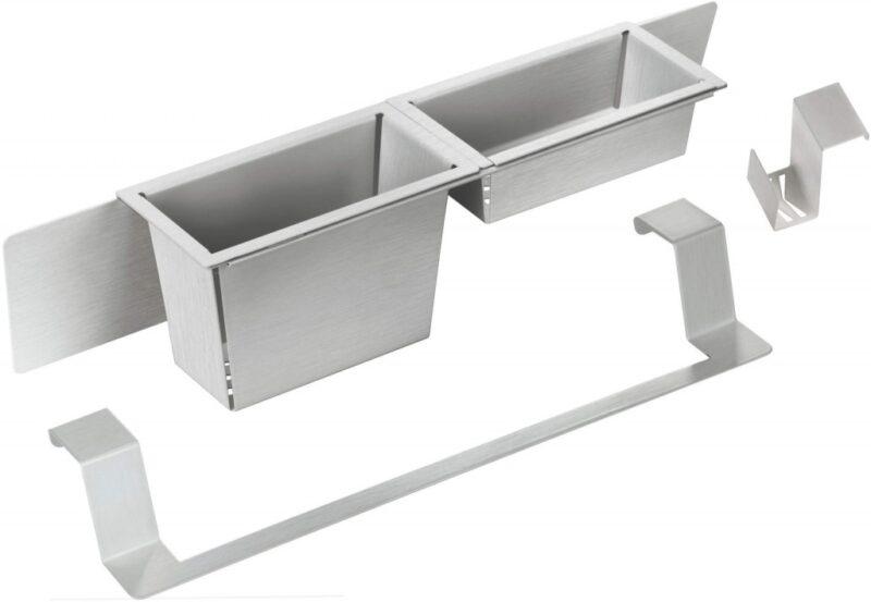 Múdra sada doplnkov, ktorá sa bude hodiť v každej kuchyni. Pomáhajú udržiavať hygienu, pretože uľahčujú odkvapkávanie hubky alebo príboru a blokujú tak množenie baktérií a iných mikroorganizmov. Navyše sú veľmi diskrétne a funkčné. Mokrá časť kuchyne je čistá a uprataná. Sada príslušenstva sa skladá z 2 košov s odkvapkávačom, háčikom na hubku a koľajnice na handričku. Boli vyrobené z kvalitnej, brúsenej nerezovej ocele, takže sa budú ľahko hodiť k ostatným prvkom kuchynského vybavenia.