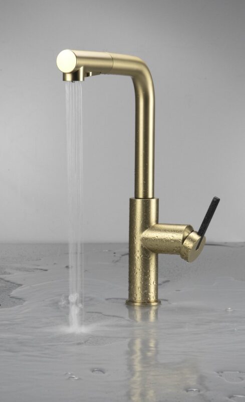 DEANTE – Momi kartáčovaná zlatá kuchynská batéria, s vyťahovacou hubicou BKM_R73M