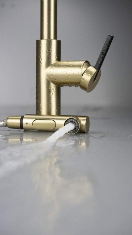 Funkčná kuchynská batéria bola navrhnutá s ohľadom na vysokú použiteľnosť a estetický vzhľad. Vďaka elegantnému dizajnu sa hodí do moderných, ale aj škandinávskych či tradičnejších interiérov. Drezová batéria má perlátor, ktorý znižuje životnosť vody, čo je veľmi dôležité pri ručnom umývaní riadu. Prevzdušňovaný prúd je navyše mäkší. Výlevku je možné navyše vytiahnuť na dlhú a ohybnú hadicu, čo uľahčuje oplachovanie veľkých a podmerečných predmetov, napríklad plechu na pečenie z rúry alebo police z chladničky. Iba tie najlepšie materiály, ktorých kvalitu potvrdzujú laboratórne testy Vrátane spojovacích hadíc Montážne puzdro uľahčuje inštaláciu batérie Batéria je vybavená spätnými ventilmi, vďaka ktorým namiešaná voda nesteká späť do inštalácie Prietoková trieda Z (4-9 l/min) umožňuje znížiť spotrebu vody Inovatívne a ľahko udržiavateľný povlak – brúsené zlato Batérie s funkčnou výsuvnou výlevkou 2funkčné slúchadlo V ponuke je prípravok na čistenie kovania vo všetkých farbách(GT) Ean: 5907650863854