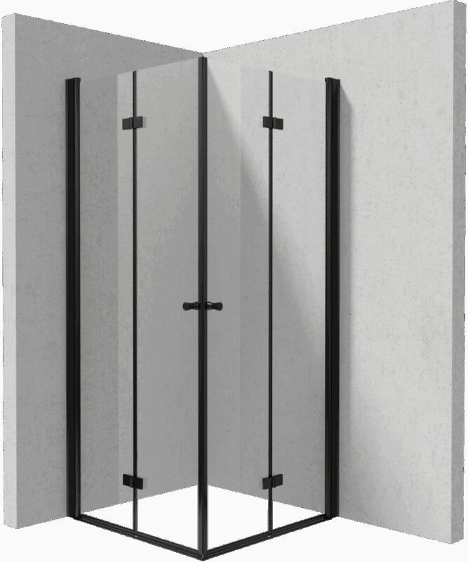 Sprchovací kút KERRIA PLUS výšky 2000 mm s dvojitými skladacími dverami s transparentným sklom, ktoré opticky zväčšujú miestnosť a hliníkovým profilom v čiernom matnom prevedení. Sklo o hrúbke 6 mm je podrobené procesom kalenia, kedy sa sklo stáva tvrdším, pružnejším a odolnejším. Sprchovací kút je pokrytý vrstvou Active Cover, ktorá má hydrofóbne vlastnosti. Nie sú tu žiadne nevzhľadné škvrny a čistenie nie je potrebné tak často. Vyznačujú sa veľmi tichým chodom, a to vďaka magnetickému tesneniu, ktoré zmäkčuje zatváranie.