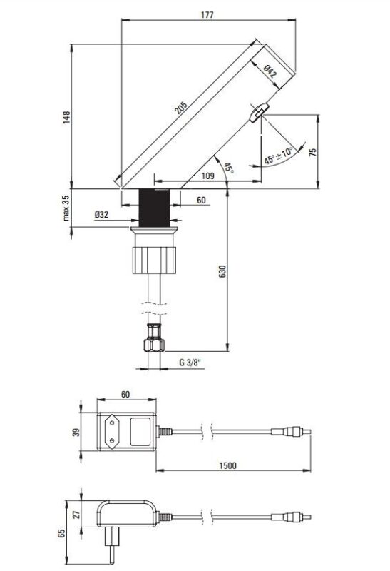 DEANTE – Sense steel Umývadlová batéria, bezdotyková, bez regulácie teploty – 230/6V BQR_F28V
