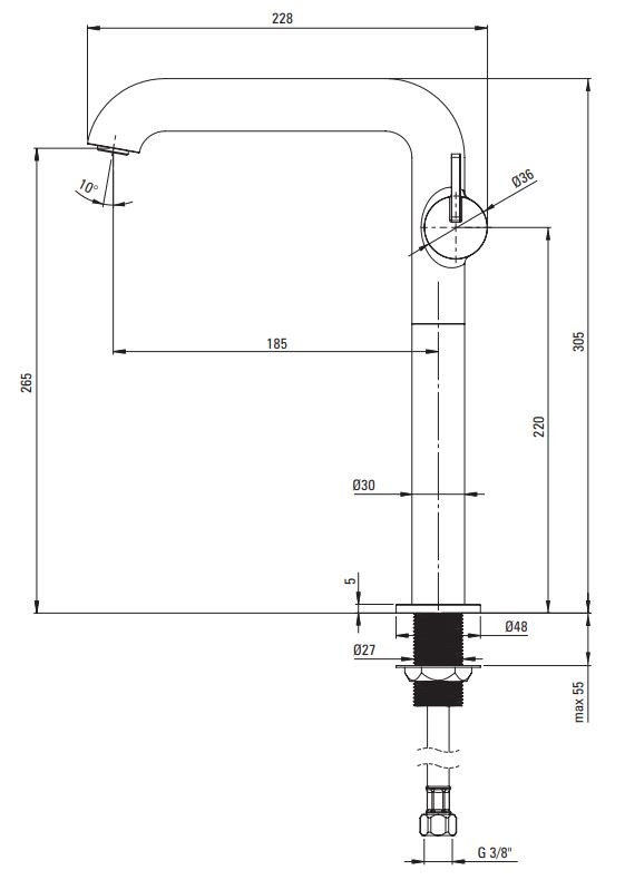 DEANTE – Silia nero Umývadlová batéria, vysoká, s obdĺžnikovým výtokom BQS_N24K