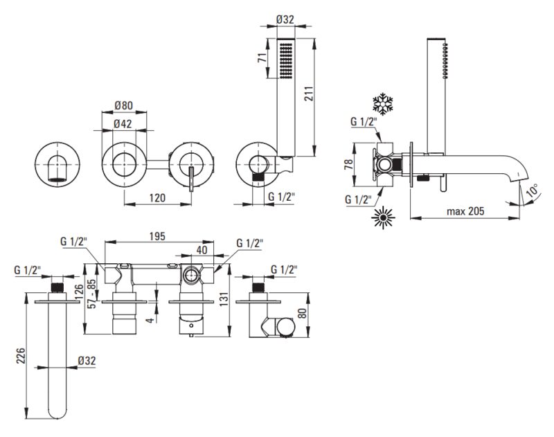 Vaňová batéria spája estetický vzhľad a funkčnosť. Klasické tvary sa perfektne hodia ako do malých kúpeľní, tak do veľkých kúpacích salónov. Odolné telo je vyrobené z najkvalitnejšej mosadze. Ľahko sa čistí a zabraňuje nadmernému usadzovaniu vodného kameňa. Vaňová batéria je vybavená aj perlátorom. Prvok rozrušuje kvapky a prevzdušňuje prúd. Vďaka tomu je voda mäkšia. Ide o 4-dierkový model. Vďaka podomietkovej inštalácii je kúpeľňová batéria diskrétna a praktická.