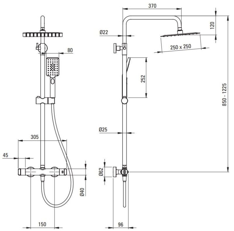 DEANTE – Therm čierna – Sprchový stĺp, so sprchovou batériou, termostat NAC_N4HT