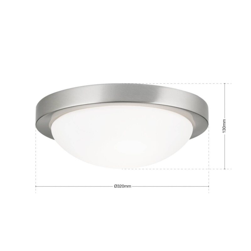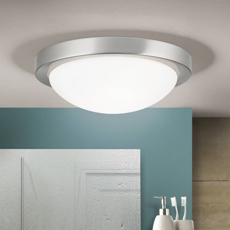 Klasicky pôsobiace stropné svietidlo MINEA s tienidlom z opálového skla a kovovým okrajom MINEA je stropné svietidlo, ktoré pôsobí zároveň decentne aj elegantne. Kryt vyrobený z opálového skla, ktorý sa dá ľahko nainštalovať pomocou bajonetového uzáveru, ukrýva žiarovku a umožňuje rovnomerné a neoslepujúce osvetlenie priestoru. Vďaka jednoduchému guľatému tvaru a ochrane IP44 je toto stropné svietidlo navyše úžasne všestranné – napr. je použiteľné aj v kúpeľni.