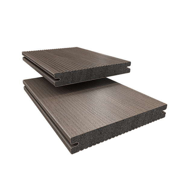 Novinka na trhu od spoločnosti Deceuninck / Inoutic (celomasívnu kompozit) terasové dosky sú vyrobené kombináciou dreva a PVC. Povrch terasy je pevný a vodovzdorný, nekrúti sa, ani sa neštiepi vďaka svojmu unikátnemu povrchu nešmýka ani za dažďa. Prvky materiálu Twinson môžete kombinovať a vytvárať tak akékoľvek tvary nešedivejú, nezarastajú machom a odpudzujú hmyz. Vyznačuje nízkou nasiakavosťou vody, čím si zachováva stály vzhľad i tvar vďaka unikátnym vlastnostiam materiálu Twinson, ale môžete úplne zabudnúť na dodatočné náklady za penetračné a ochranné oleje a nátery. Twinson je prakticky bezúdržbový a trvanlivý materiál s garanciou 25 rokov. S použitím tejto palubovky bez dutých komôr možno precízne vykonať aj guľaté rohy – ideálne pre okraje bazénov a zaoblené tvary. Terasu možno používať obojstranne. Jedna strana je jemne drážkovaná, druhá strana má hladkú štruktúru. Plné dosky navyše vynikajú vysokou odolnosťou proti nárazu.