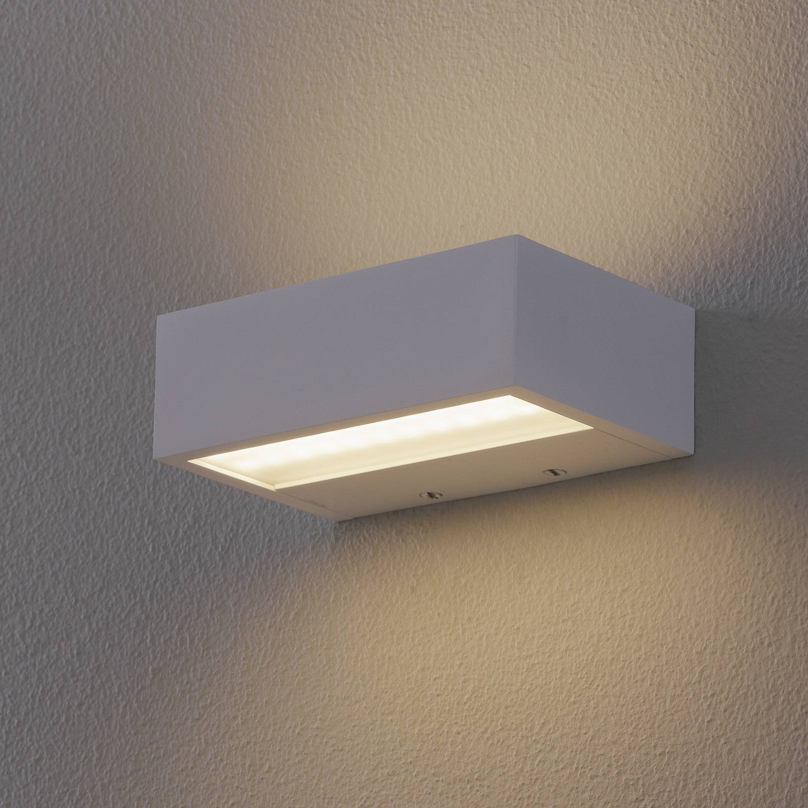 Nástenné svietidlo Box N LED s hranatým tvarom a matným bielym povrchom Nástenné svietidlo Box N LED je absolútne všestranné vďaka svojmu bielemu povrchu, ktorý umožňuje jeho integráciu do mnohých farebných schém, a stupňu krytia IP44, ktorý umožňuje jeho použitie aj vo vlhkých miestnostiach, či už v súkromnej kúpeľni alebo v kúpeľni či wellness centre hotela. Svetlo z integrovaných LED diód vyžaruje smerom nahor a nadol s veľkým účinkom a je neoslňujúce a rovnomerne rozptýlené satinovanými krytmi, ktoré slúžia ako difúzory. LED diódy sú stmievateľné a ich jas sa dá regulovať pomocou fázového stmievača na koncovej hrane v elektrickej inštalácii (nie je súčasťou dodávky).