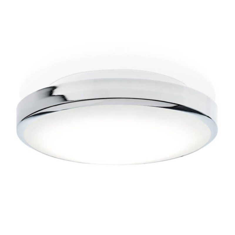 Okrúhle LED stropné svietidlo Glow s pochrómovaným rámom a satinovaným sklom S mäkkým svetlom a jednoduchým, elegantným dizajnom poskytuje stropné svietidlo LED Glow príjemné všeobecné a plošné osvetlenie v moderných chodbách a kúpeľniach. Svietidlo, ktoré je odolné proti striekajúcej vode v súlade s triedou ochrany IP44, má okrúhly oceľový rám s lesklým chrómovým povrchom a difúzor zo satinovaného skla, ktorý rovnomerne šíri teplé biele svetlo z integrovaných LED diód. Svetelný výkon je možné externe regulovať stmievačom zadnej hrany.