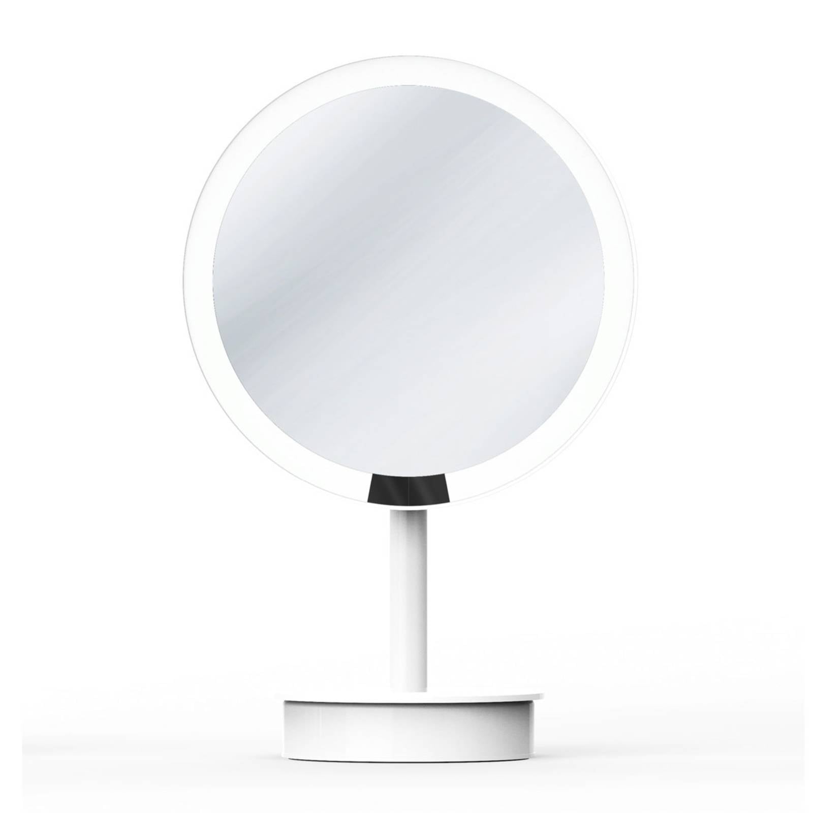 Moderný univerzálny doplnok toaletného stolíka – stolové zrkadlo LED Just Look Plus SRAStolové zrkadlo LED Just Look Plus SR na prvý pohľad vyzerá ako jednoduché, moderné toaletné zrkadlo. Zrkadlo Just Look Plus SR, ktoré pozostáva z okrúhleho zrkadlového skla obklopeného diódami LED a držaného tyčou na okrúhlom podstavci, je osvetlené zrkadlo do kúpeľne. Pri bližšom pohľade a používaní však Just Look Plus SR presvedčí mnohými funkciami, ktoré ho robia jedinečným. súčasťou zrkadla Just Look Plus SR sú tieto funkcie:- 5-násobné zväčšenie- LED osvetlenie- dobíjateľná 3,7 V lítium-iónová batéria- dobíjateľná a vymeniteľná pomocou 2 m USB kábla a napájacej jednotky- snímač pohybu- funkcia automatického vypnutia po 15 sekundách- možnosť stmievania, ako aj nastavenia farby svetla- nastaviteľná výška od 38 do 44 cm