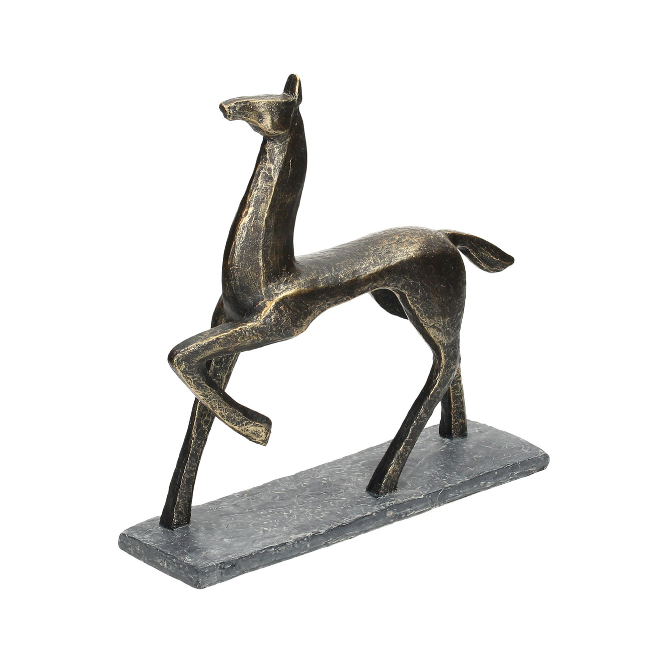 Figúrka koňa je skutočnou lahôdkou nielen pre milovníkov jazdy na koni. Skvele bude vyzerať umiestnená na komode alebo písacom stole, ktoré skvele doplní. Zaujímavý dizajn a štíhla silueta koníka určite upútajú pozornosť členov domácnosti a hostí. Dekorácia bola umiestnená na obdĺžnikovej podpere, ktorá zaručuje jej stabilitu.Rozmery: šírka 29 cm, dĺžka 8 cm, výška 29 cm.
