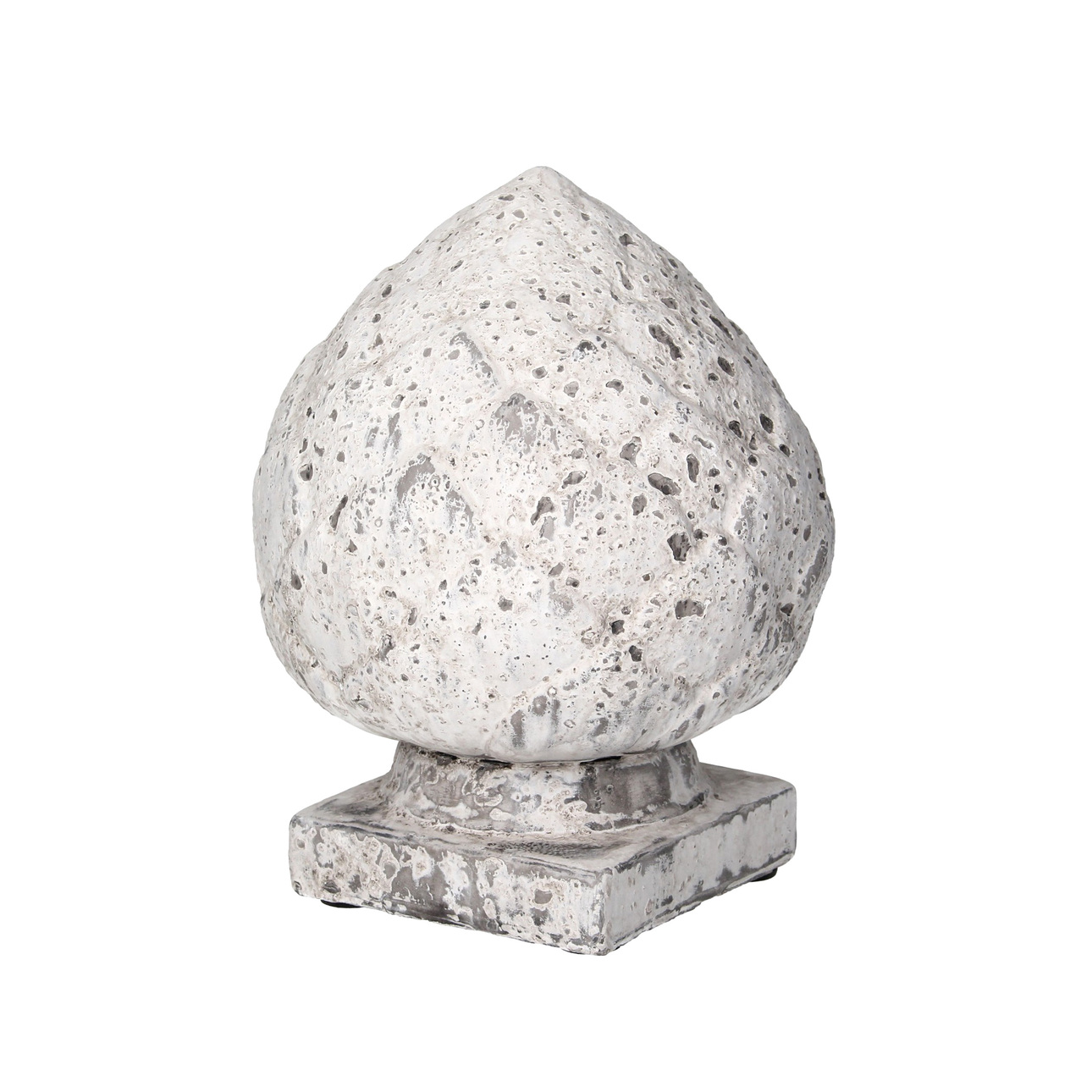 Rozkošná dekorácia v tvare šišky. Je vyrobená z keramiky sivej farby s ľahkými škvrnami a vyzerá skvele. Táto stojaca figúrka poslúži ako vkusná dekorácia na stôl, komodu alebo knižnicu. Skvele sa bude komponovať s ďalšími doplnkami v podobnom štýle.